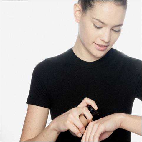 Aplica un poco de maquillaje en el dorso de tu mano recuerda siempre que el tono vaya acorde con tu color de piel. Luego coge con una brocha kabuki un poco de producto – no todo porque se seca- y aplícalo en el centro del rostro.