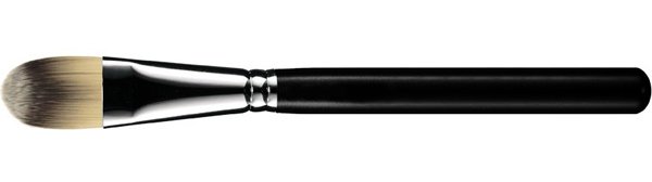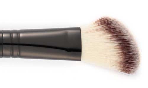 Es la brocha principal de todo maquillaje, pues es esencial para aquellas que usan una base de maquillaje líquida o en crema, ya que el resultado obtenido es mucho más favorecedor que si la aplicamos con esponjitas o con los dedos. Como vemos en la imagen, se trata de un pincel plano de pelo sintético que deja un acabado muy natural y uniforme, evitando los excesos de maquillaje en el cutis.