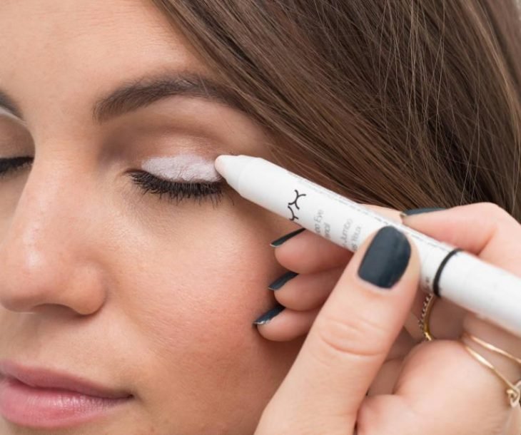 Para que la sombra de ojos destaque, toma un lápiz delineador de color blanco y rellena tus párpados. El tono opaco del blanco hará más intenso cualquier color de sombra que apliques.