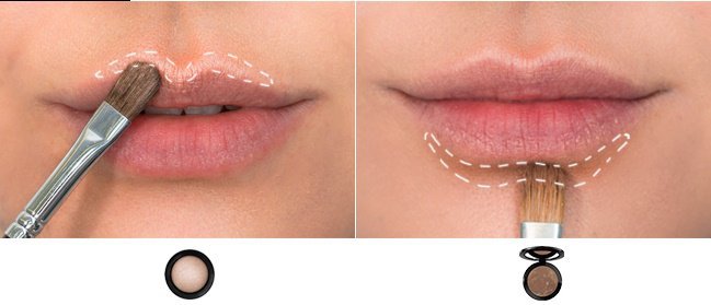 Aplica sombra obscura debajo de los labios y sombra más clara en la parte de arriba para darles relieve.