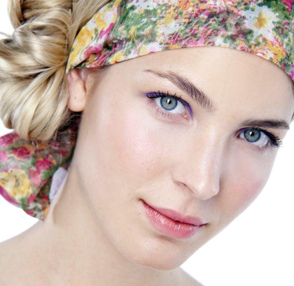 Paso 3 – Ojos. Invierte en una sombra en crema de larga duración o en un delineador en gel para evitar la acumulación de maquillaje, y aplícalo solamente en el área de los párpados. Comienza en la base de las pestañas y difumínalo hacia arriba. Las sombras de turquesa, púrpura y oro funcionan bien en todos los tonos de piel. Aplica mascara a prueba de agua solamente a las pestañas superiores para evitar que durante el día se te pongan los ojos de mapache.
