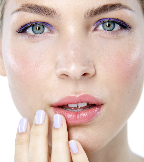 Paso 4 – Mejillas y labios. Usando tus dedos, aplica rubor en crema en los pómulos con palmaditas en movimiento circular para obtener un acabado difuminado. Aplica suavemente sobre tus labios lo que queda de producto en tu dedo para crear un suave borrón de color.