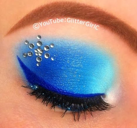 Un look inspirado en la revolucionaria princesa de Disney Elsa, tan controversial como su maquillaje, por ello quisimos hacer nuestro propio maquillaje de Elsa, con un estilo único y original, el tono azulado y los brillantes son los protagonistas de este maquillaje. Comienza con la base blanca tapando todo el párpado móvil con una capa fina pero cubriente. Esto hará que las sombras que aplique después resalten mucho más, la idea es crear un lienzo blanco, de igual forma empléalo en el párpado inferior y en lagrimal.