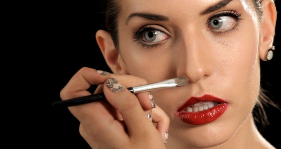 Para corregirla se aplica maquillaje de un tono más claro que el fondo, esparciéndolo en toda la nariz.