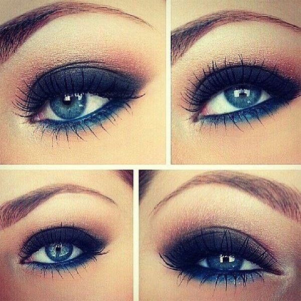 Es muy importante que el maquillaje de día sea muy fresco, con tonos claros naturales. Si usas una sombra azul combínala con colores beige o nude para tener un contraste. Puede colocarte 2 o 3 capas de mascara para las pestañas y de esta manera resaltar los ojos o usar una máscara de pestañas en color azul en la parte inferior del ojo. ¡Qué esperas para lucir bella con un maquillaje en tonos azules!