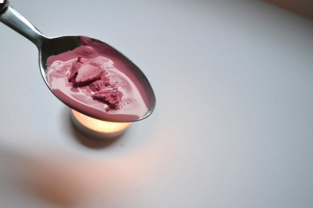 Cuando ya tengas el antiguo labial en barra convertido en líquido, échalo en la ranura de la paleta que hayamos escogido, pero debes hacerlo haremos rápido, sino el líquido espesa muy rápidamente y moverás un poco la paleta para que quede el líquido uniforme y esparcido dentro de su ranura.