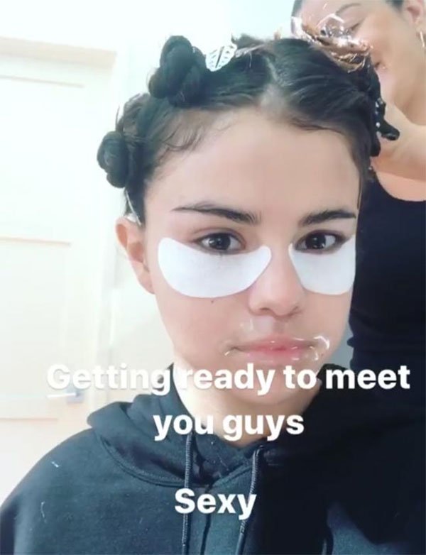 Momentos antes de la presentación de colaboración con la firma de Coach, ella compartio una imagen en su cuenta oficial de Instagram en la que se ve con una mascarilla en la zona de los labios y debajo de los ojos. Estos son unos parches que tienen la finalidad de hidratar la zona de la boca y tratar esas horribles ojeras.