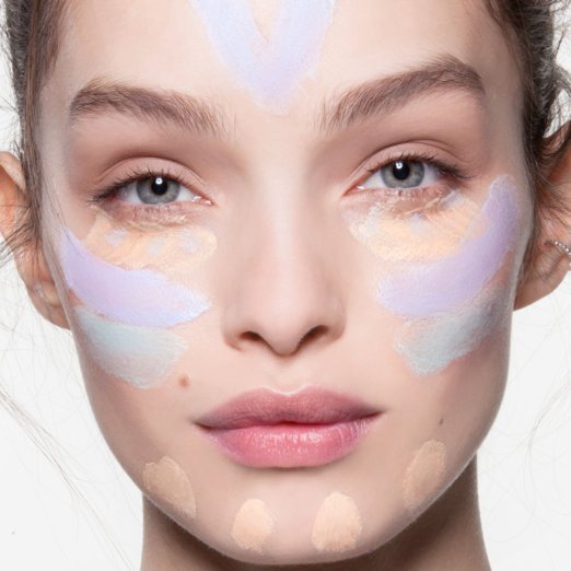 Corrector Morado. Ilumina tu rostro y disminuye las ojeras. Realízate un redondo en la frente y difumina muy bien. Luego coloca dos puntos en la parte baja de las mejillas.